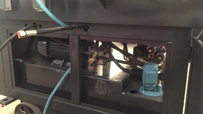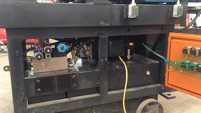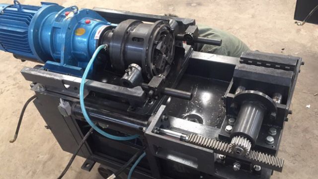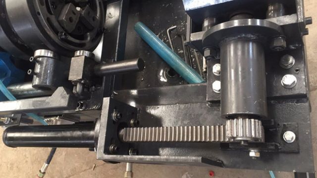 (3)電機(jī)下面新增加油缸推動(dòng)系統(tǒng),使切削剝肋和鋼筋套絲實(shí)現(xiàn)自動(dòng)進(jìn)給,鋼筋套絲工人無需另行操作